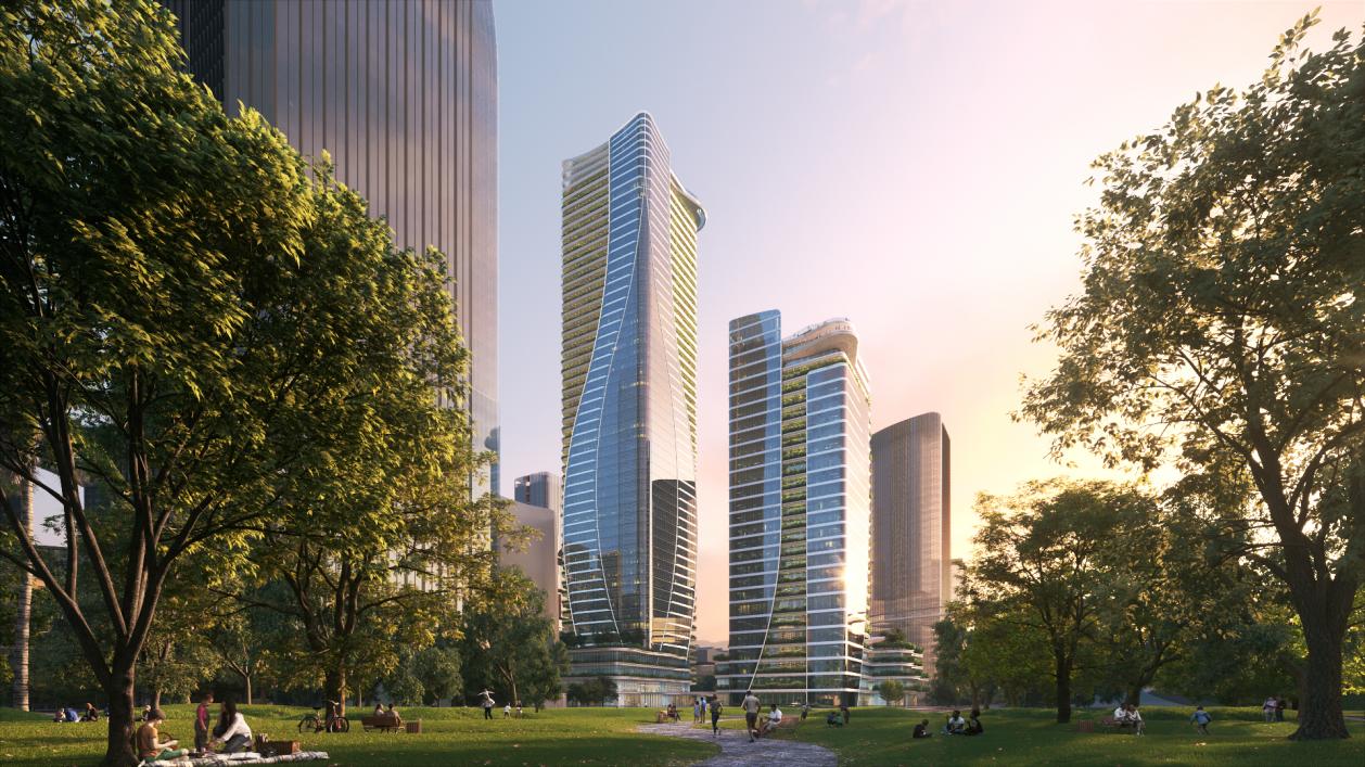 据介绍,深铁超总基地北塔定位为“湾区未来总部办公新标杆”和“国际生态总部中心”,将融合生态理念与TOD开发模式,打造成绿色、开放的现代化建筑。在设计上,项目以“生态共生,林湾碧影”为核心理念,创意灵感来源于深圳湾红树林湿地。建筑形态以“红树湾的种子”为意象,实现与自然环境的有机融合。立面设计通过南北叠合的S形曲线,呼应地铁轨道的流动感及深圳地铁标识,横向线条层层递进,体现城市发展的稳健节奏。